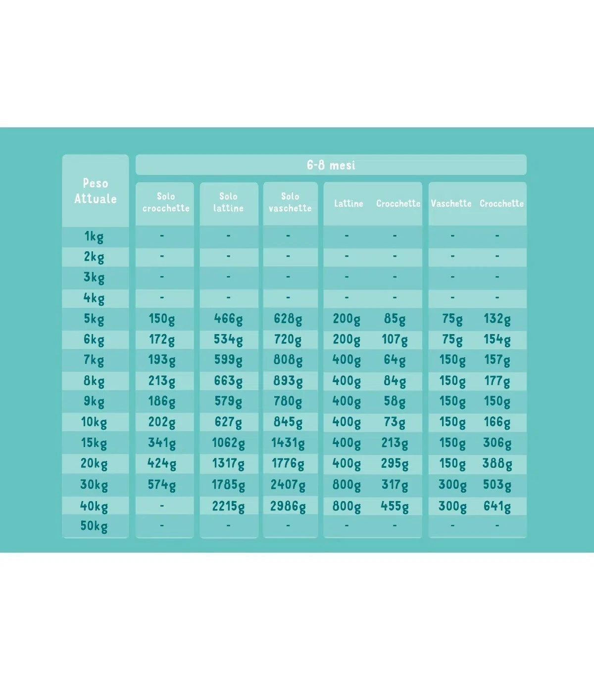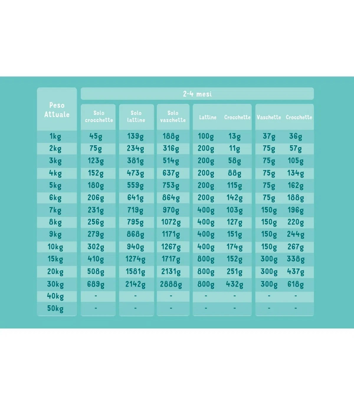Troverai indicazioni di dosaggio per cuccioli da 0 a 12 mesi d’età .