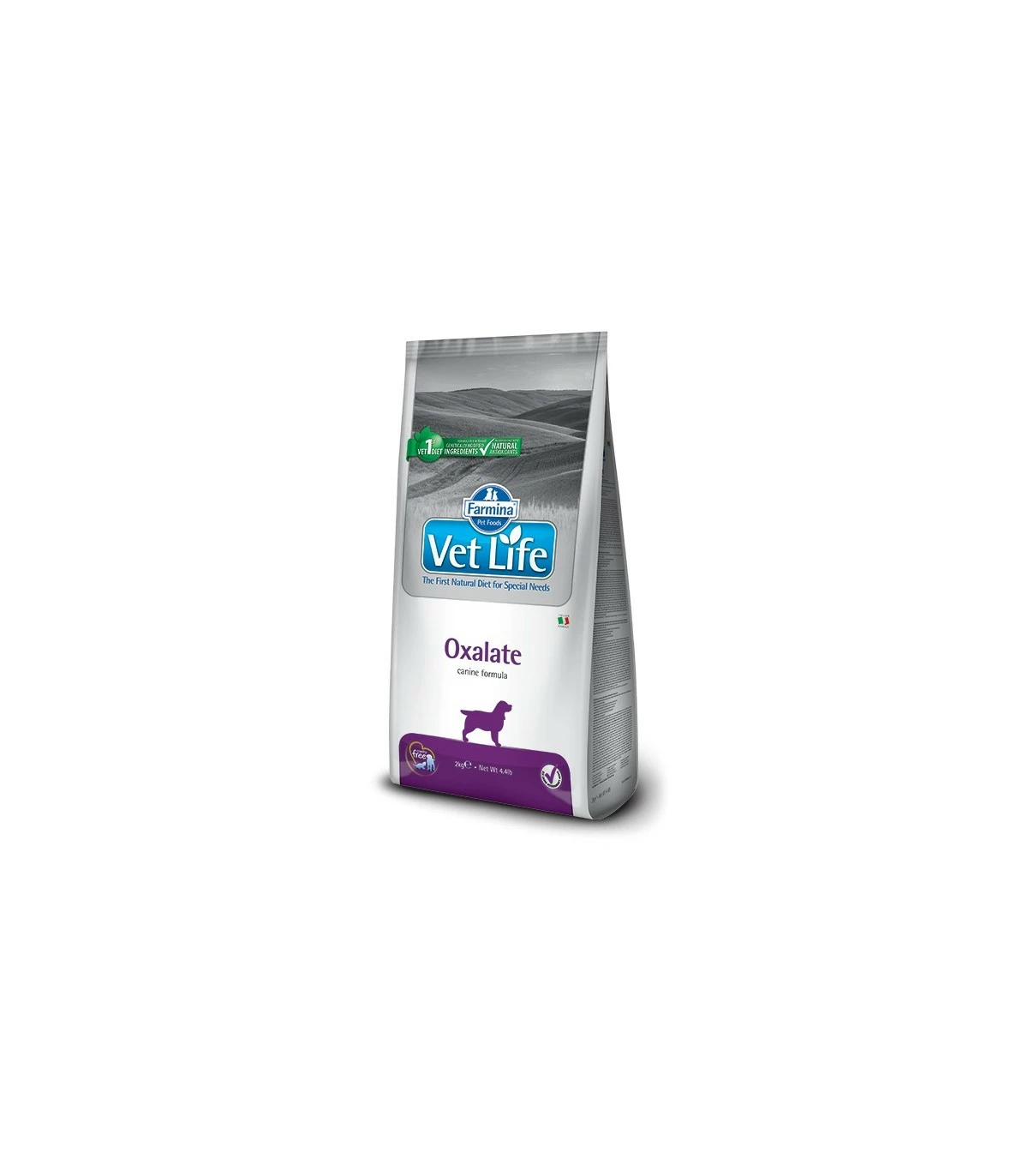 Farmina Vet life cane oxalate 2 kg riduce la formazione di calcoli da ossalati, urati e cistina. Alcalinizza urine. Farmina Vet Life Oxalate è un alimento dietetico completo destinato ai cani adulti per la riduzione di calcoli a base di urati, ossalati e cistina. È inoltre indicato in soggetti affetti da patologie renali in stadio avanzato.