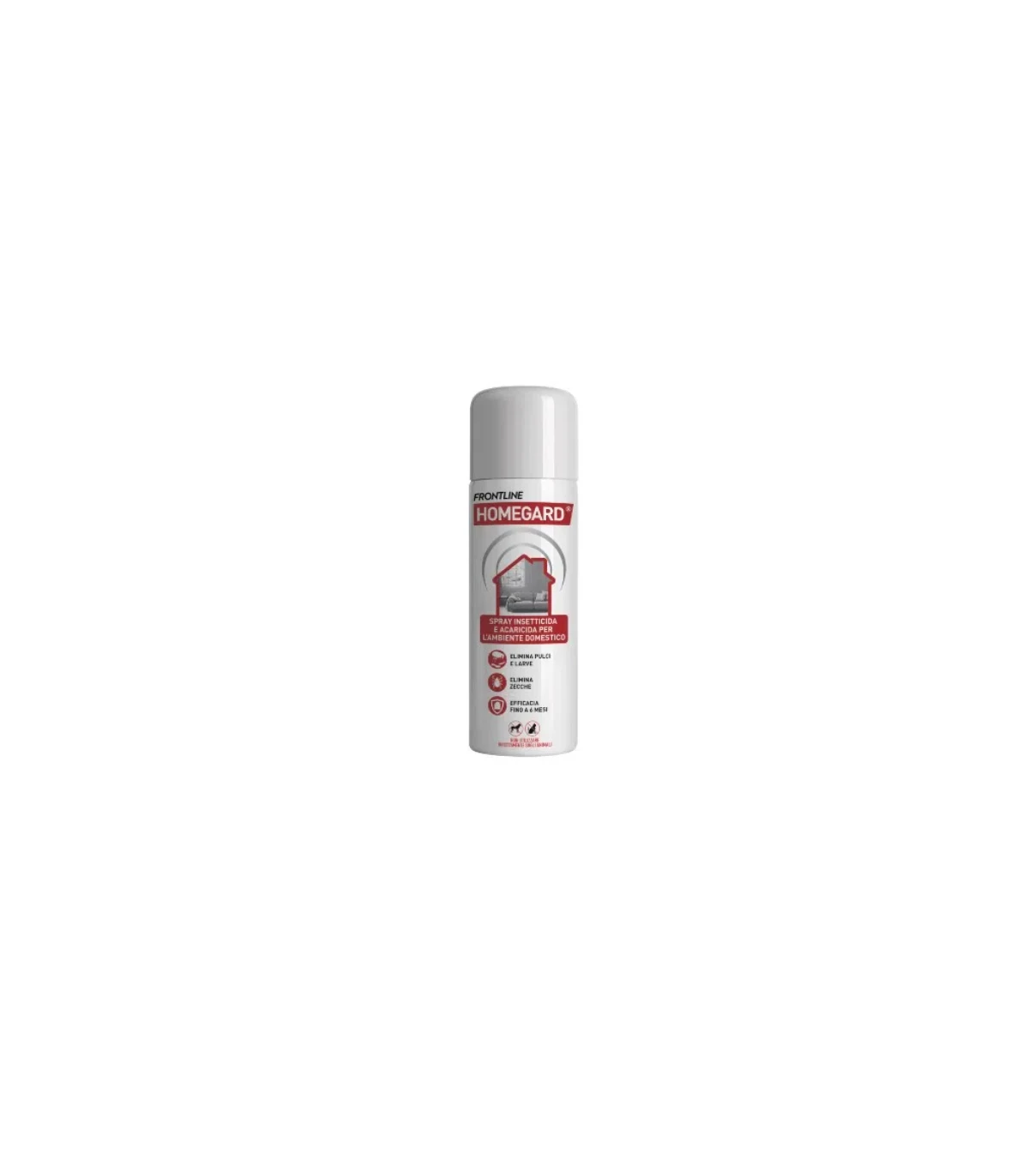 Frontline Homegard Spray è uno spray in aerosol per il trattamento, in ambiente chiuso, dei mobili non lavabili, tessili per la casa come tappeti, stuoie e poltrone.