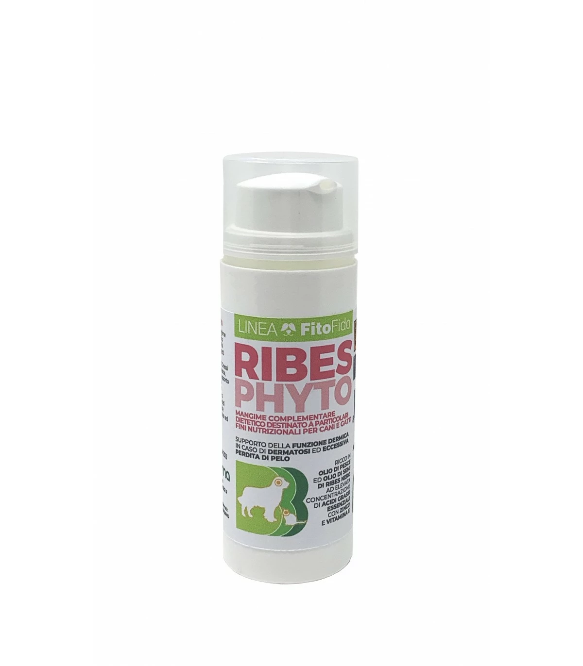 INDICAZIONI D’USO: RIBESPHYTO è un mangime complementare dietetico destinato a particolari fini nutrizionali per cani e gatti formulato ad elevata concentrazione di Acidi Grassi Essenziali, con Olio di pesce, Zinco e Vitamina E, a supporto della funzione dermica in caso di dermatosi ed eccessiva perdita di pelo. L’apporto dietetico di Acidi Grassi Essenziali favorisce il normale trofismo di cute ed annessi cutanei. Alta appetibilità e facile somministrazione.